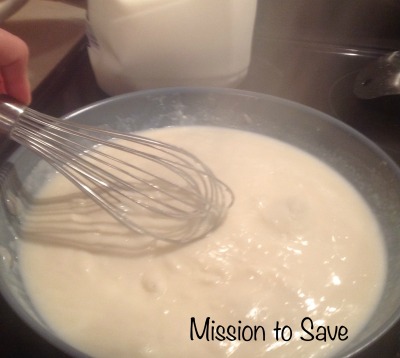 - Then slowly stir in milk- continue stirring until thick (and no lumps)