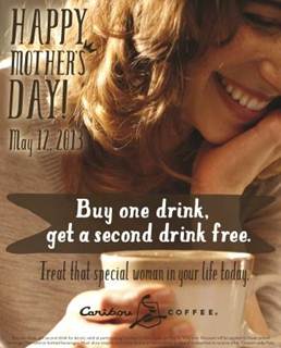 Caribou Coffee: BOGO drinks for Mom on 5/12/13 with printed coupon or show on phone.